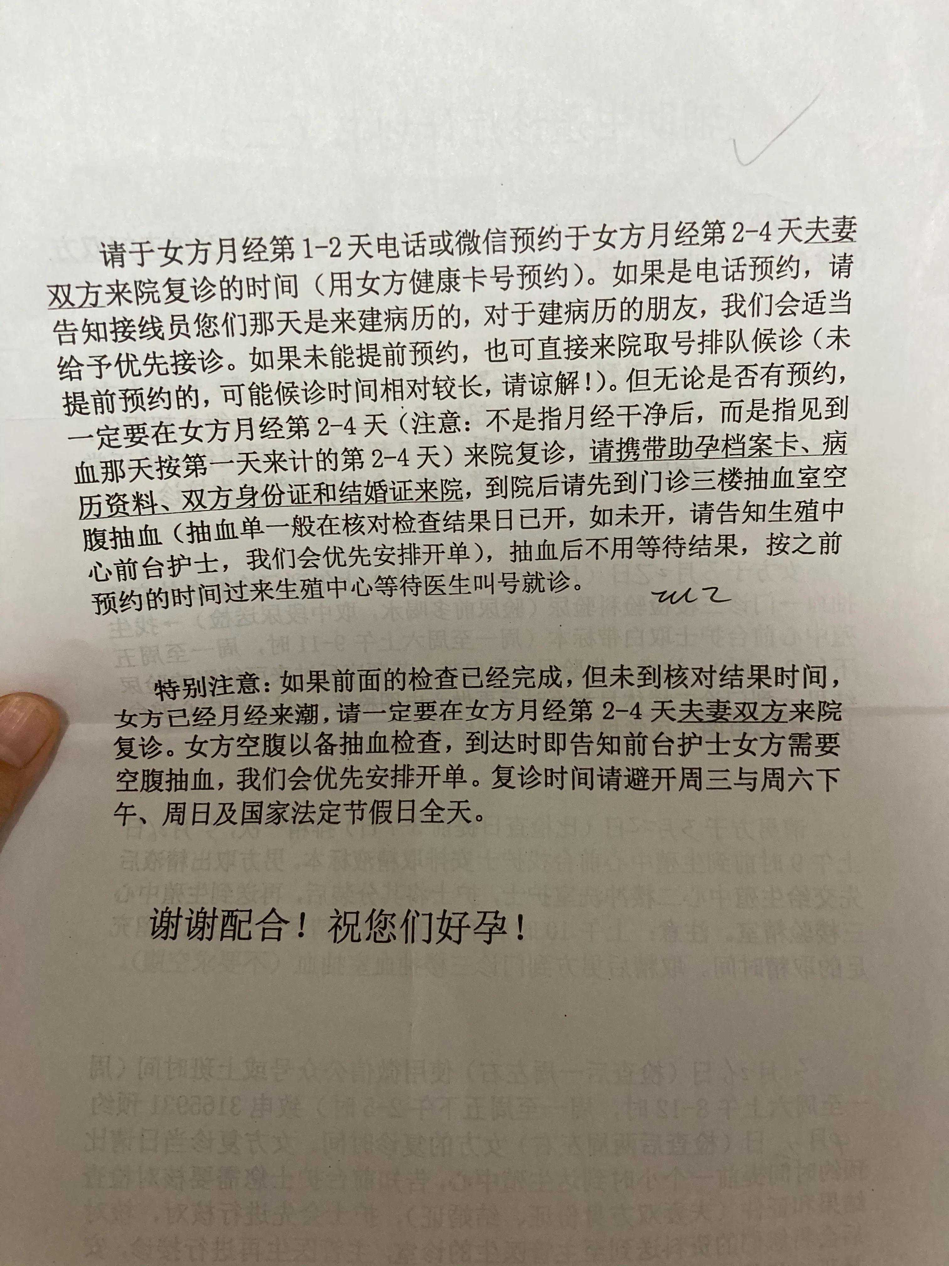 完成所有检查,医生说等月经来的第二天早上抽血复诊。