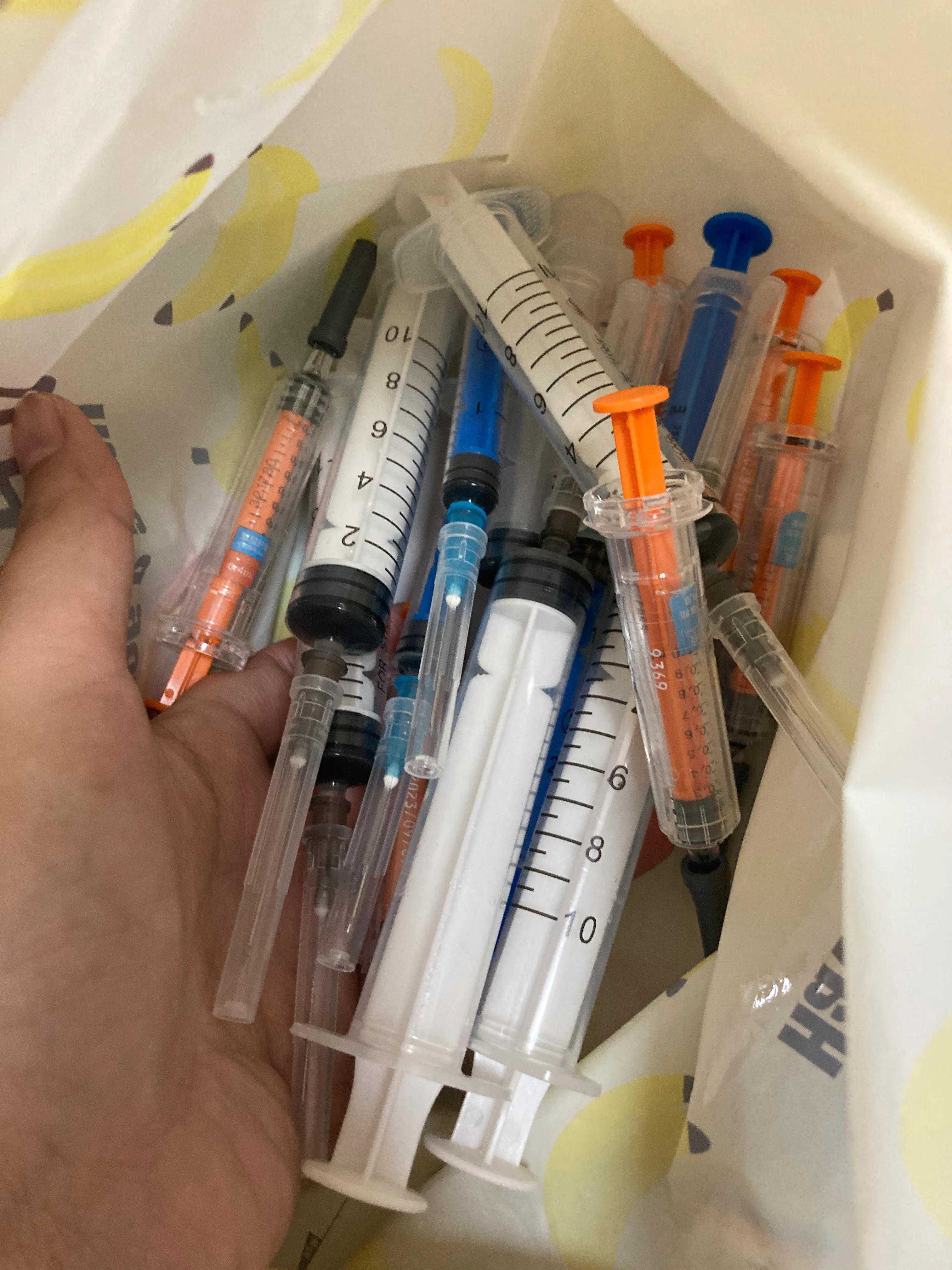 有的针是本来配好了针水,可以自己打的,我都学会了勇敢给自己扎针了,王胖每次在旁边协助时候,他看着都觉得疼,有时候我怕他影响我扎针,赶他出去。之前扎针老是第二天位置出瘀血,可能拿自己实践多了,找到窍门懂得怎样打针了,扎针要快,拔针也要快,有的药水是很痛的,尽量提早一小时在冰箱拿出来解冻,因为冰冻的针水是会痛一点的,痛就忍一忍。打完针的针筒要装好,拿到医院在放规定的地方,不能随便扔垃圾桶的。