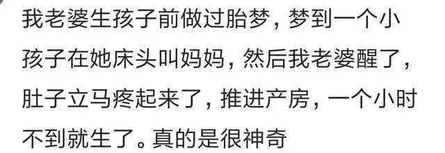 之前先兆流产,保胎,三天抽一次血复查孕酮,每次都是12左右,所有的医生都建议我流了,没有保的必要。是我自己坚持留着。有天白天,刚躺床上闭着眼睛,其实脑子清晰,没睡着。就感觉像是梦里的情景,门开了,有个像魂魄的阳光少年,穿着白衬衫,长得特别好看,对我咧嘴笑,然后就像附体一样进入我肚子里。我睁开眼,就坚定的知道胎保住了,而且还是个男娃。之后去产检,胎盘已经可以分泌孕酮,孕酮正常了,生的是男宝