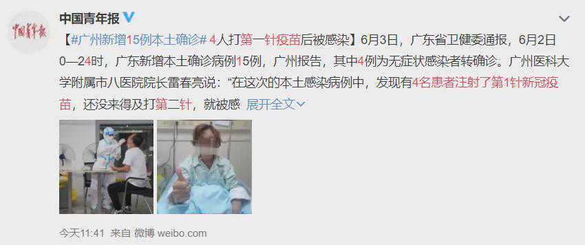 发现有4名患者注射了第1针新冠疫苗