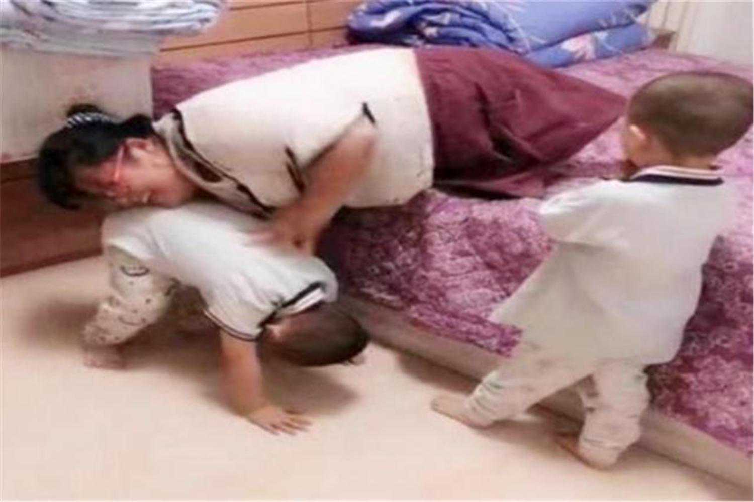 由于吕娟上下床不方便,两个孩子就变成了她的“小台阶”,帮她活动身体,还会分担一些家务。
