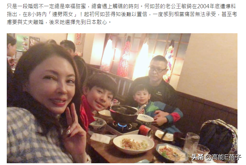 2003年,她闪嫁给商人王敏錡,这位王敏錡是花莲某饭店董事长,身家不俗,对于何如芸这样的演员来说,也是嫁入豪门了。