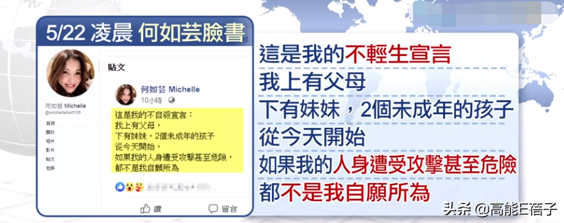 就在22日凌晨,她突然在网上发表了“不轻生宣言”,她说自己上有父母下有妹妹和孩子,如果她的人身遭受攻击甚至危险,都不是她自愿所为。