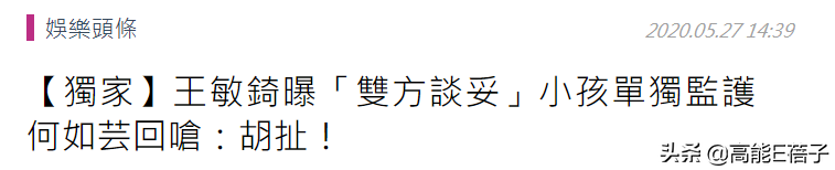 而王的律师天团则回应,双方谈判卡住的主要原因,是何如芸原本谈妥接受让王敏錡对两名小孩“单独监管”,还放出王敏錡母亲的话,请何如芸小姐“放下”,为小孩利益着想,让所有纷争告一段落。